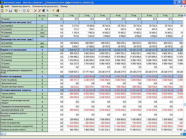 Сложность заключается в том, что использование имеющихся электронных таблиц (MS Excel) делает аналитическую оценку эффективности весьма трудоемко и не всегда дает адекватную оценку комплексным преобразованиям. Для этой цели и комплексного количественного анализа оценки месторождений идеально подходит российский специализированный программный комплекс "Мастер-Минерал", позволяющий быстро получать количественные характеристики привлекательности месторождения, проводить анализ чувствительности и риск горнорудного проекта (см. рис).